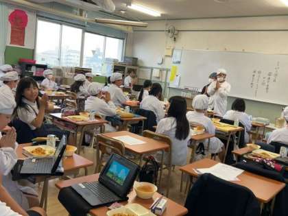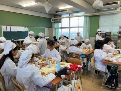 元気に「いただいます」と、あいさつをして食べ始めました。 和やかな給食風景です。