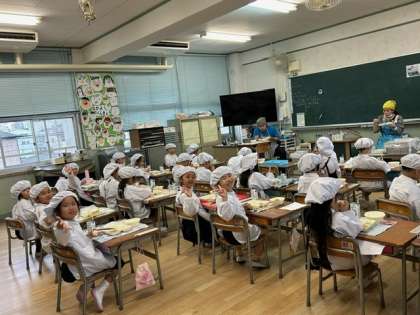 (写真は、1年生の給食風景です)