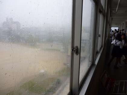 登校時には、降っていなかった雨。1時間目が終わる頃、急に激しい雨が・・・。
