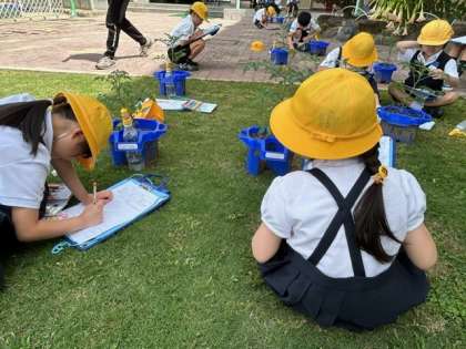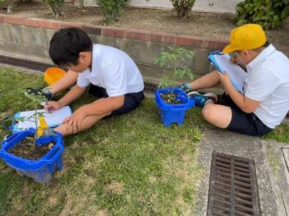 子どもたちが、「ミニトマト」の観察をしています。