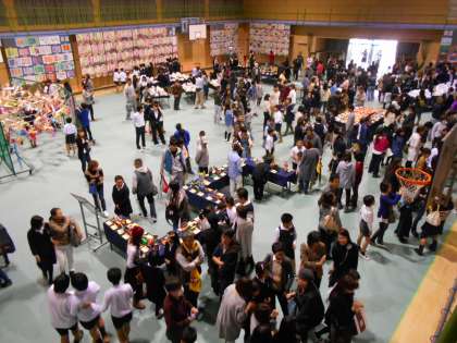 参観授業の後、児童と保護者が一緒に作品を鑑賞しました。