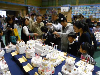 鑑賞会前半、1〜3年生の作品鑑賞会でのようすです。