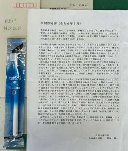 先週「歯科検診」があり、歯科校医の先生より「健診総評」をいただきましたので一部を紹介します。