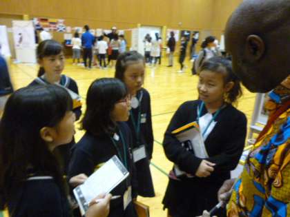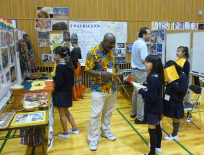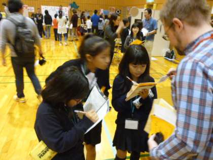 「初めは、何となく恥ずかしかったが…」だんだん慣れてきました。たくさんのC−NETの先生に自己紹介とインタビューをし、「イングリッシュ・デイノート」にC−NETの先生のサインをもらっていました。