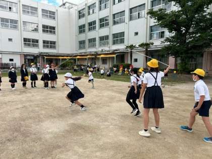 5年生の子どもたちが、「長縄」で遊んでいました。