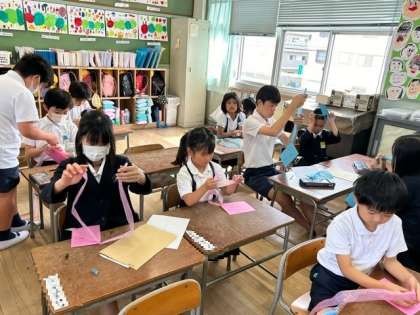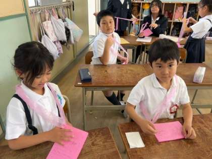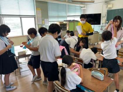 昨日の給食時に見た、各学級の紹介CMを思い出しながら、行きたいお店の順番を考えました。