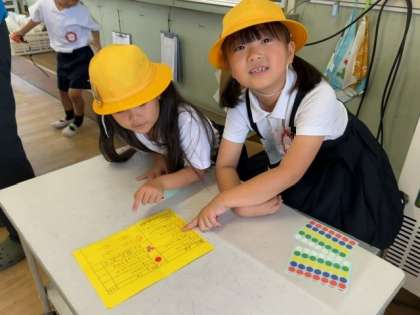 受付の子どもたちが、カードにスタンプを押してくれます。1年生は初々しいですね。