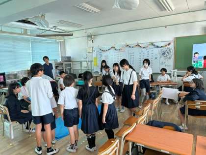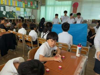 「氷水に手を浸しているのは誰か」など、6年生の表情やしぐさを見ながら○○を探します。(ほんものは誰か当てます)