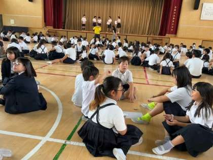 今日の児童集会は「巽南小学校の先生に関するクイズ」です。