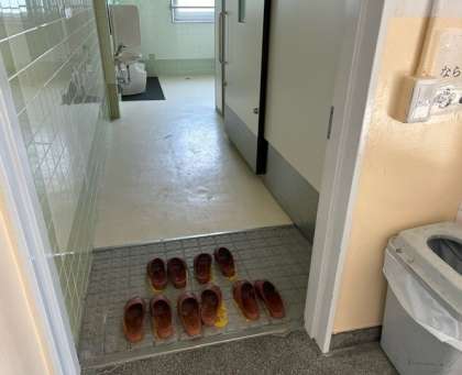 トイレのスリッパに限らず、使った物はもとに戻す、そして、そうじやあいさつ等々「当たり前のことが当たり前にできる」ことで「人を思いやる」心も育つのではないでしょうか。