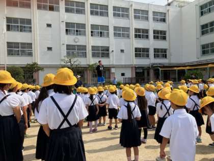 最後に、看護当番の先生から月目標「健康で安全な生活をしよう」と週目標「廊下・階段は右側を歩こう」について話がありました。