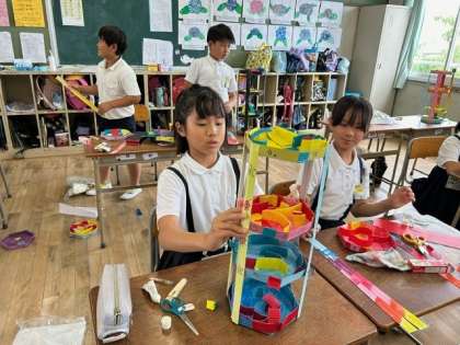 ゴールまで、ビー玉を転がったり落としたりして楽しみます。