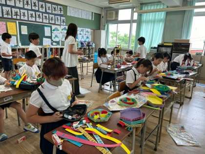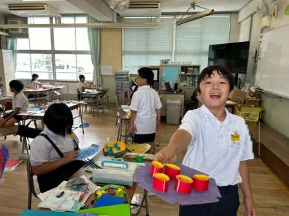 図画工作科の学習で「ゴロゴロガーレ」を組み立てています。
