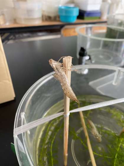 昨日の9/17(月)にプールにいたヤゴが成虫になりました。