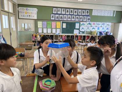 昼休みにはみんなでトンボの巣立ちを見送りました。