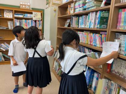 子どもたちが、本棚で本を探したり、静かにお気に入りの本を読んだりしています。
