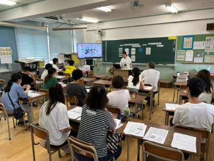 大阪市教育委員会英語イノベーショングループより、講師の先生に来ていただき、「外国語(英語)指導」の研修を行いました。