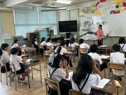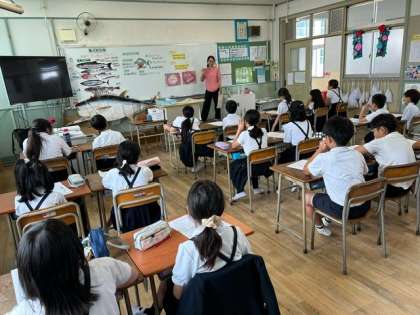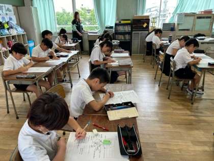 4年生の子どもたちが興味をもって話を聞き、しっかりと考えていました。