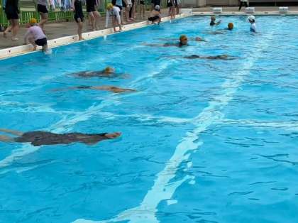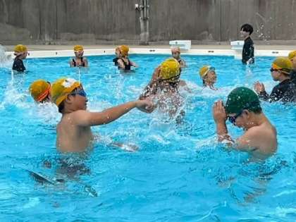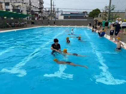 プールの横を使って、前の時間に練習した「けのび」をしました。