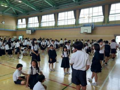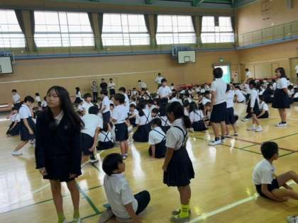 集会委員会の児童が出す問題を、〇だと思ったら座り、×だと思ったら立ちます。