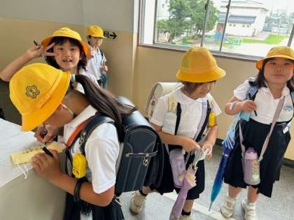 一生懸命に書いている低学年の子どもたち、少し恥ずかしそうな6年生……