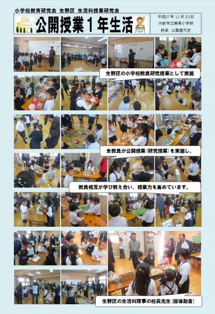 11/20(金)生野区小学校教育研究会 生活科授業研究会を本校において開催しました。また、校内においては、公開授業とし授業を参観することで教員相互が学び教え合い、各教員が授業力を高める機会にしました。