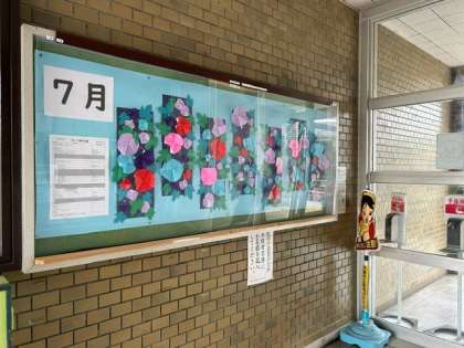 7月の玄関掲示は4年生の子どもたちがつくりました。