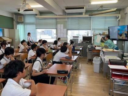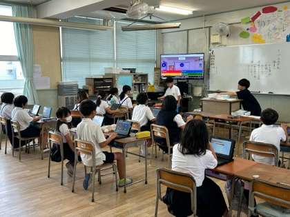4年生、5年生の教室でも、子どもたちが、気軽に英語の歌や英会話に親しんでいました。