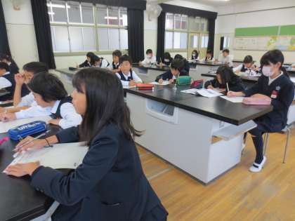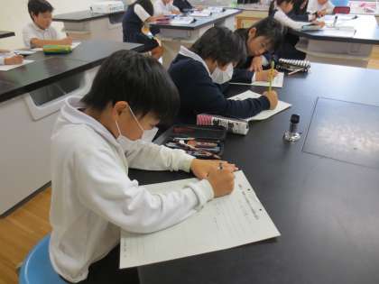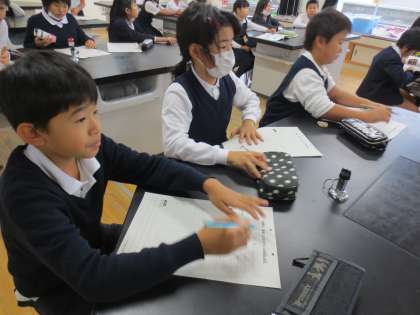 何を調べ、どのようにまとめていくのか、ワークシートに書いています。実験のめあてを真剣に考えています。