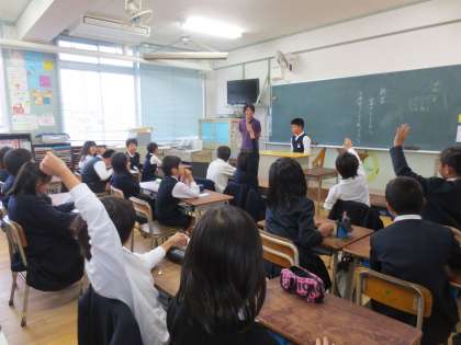 4年1組に新しいお友だちがきました。みんなはとても嬉しそうでした。