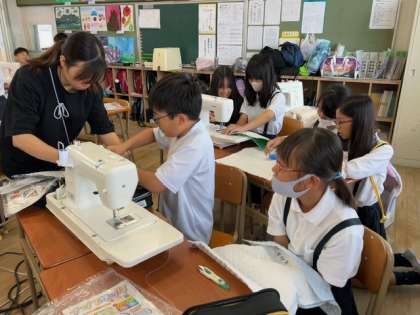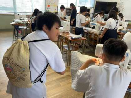 ミシンを使っての「ナップザックづくり」の続きです。