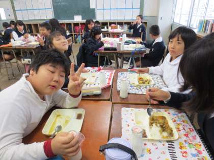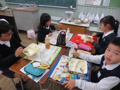 5年1組の交流給食の様子(1)です。