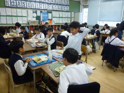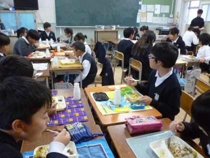 3年2組の交流給食の様子です。