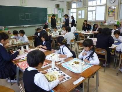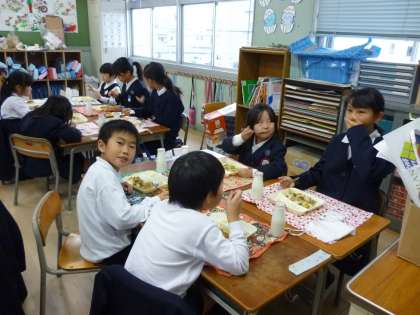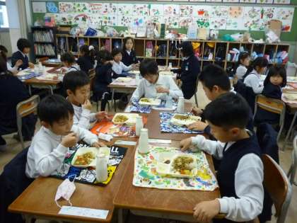 お姉さん、お兄さんとの給食は、1年生のみなさんにとってどうだったでしょうか。いつもと少し違う雰囲気の中、子どもたちはとても静かに食べていました。それに楽しそうで、とても美味しそうに食べていました。