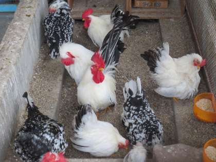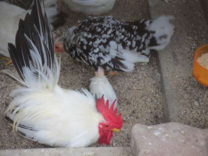 11月のはじめに誕生した「ひよこ」は元気に育っています。でもあまえんぼうです。いつもお母さんチャボのおなかの下にもぐっています。