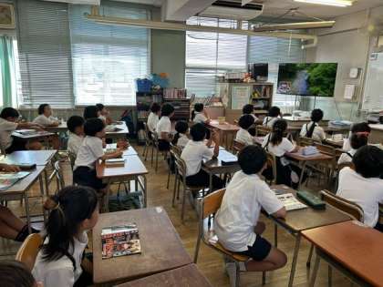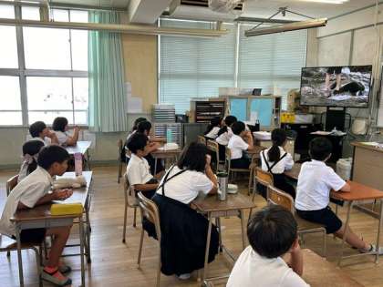 2・3・4年生の教室でも、子どもたちが動画を見ていました。