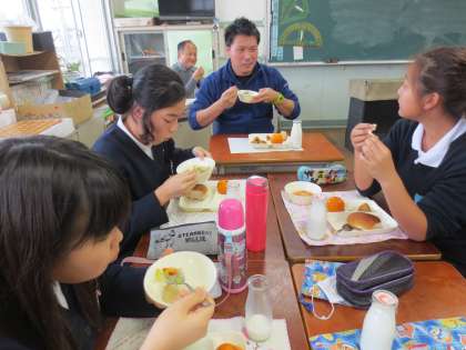 小・中の校種間連携として、新巽中学校の上田先生と松本先生に、6年生(5・6時間目)の授業をしていただきます。