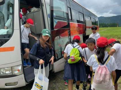 ハチ高原に到着しました。バスの中でもみんな元気な様子で過ごしていました。