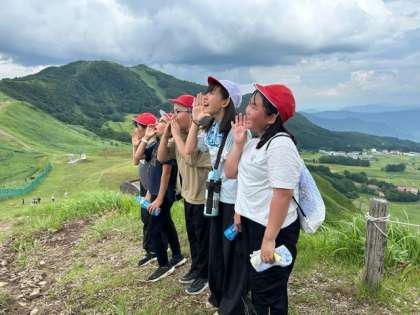 頂上からみんなで大きな声を出しています。