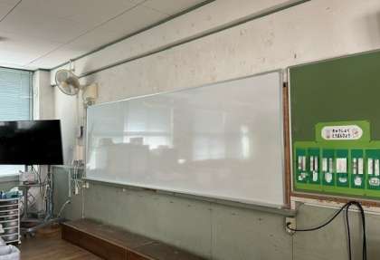 長期休業中にいくつかの工事を行います。その一つ、校長経営戦略支援予算を活用して、1・2年生教室の黒板を、ホワイトボードにかえました。