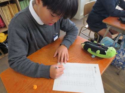 タイムを競って計算問題にチャレンジしています。繰り返すことで計算力が定着してきています。