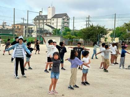 朝6時20分の開門時刻になると、子どもたちが一人また一人と体操にやって来ました。