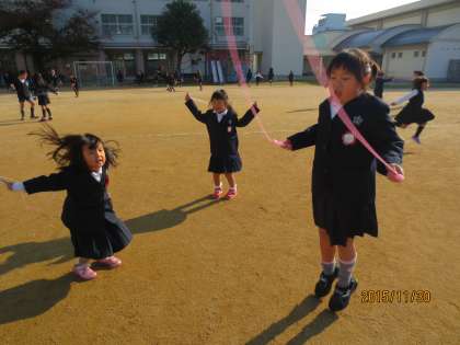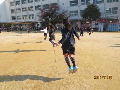 今は縄跳び週間で、全校の児童が縄跳びにチャレンジします。