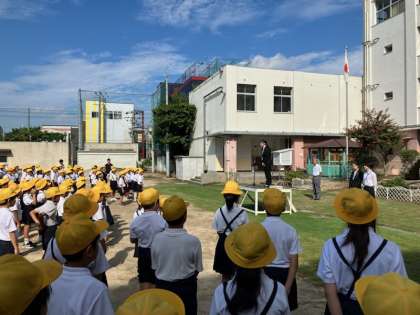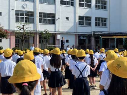 続いて、今日から始まる「教育実習」について話があり、3人の教育実習生の紹介と児童へのあいさつがありました。
