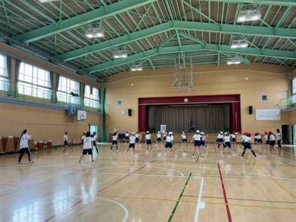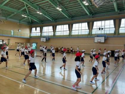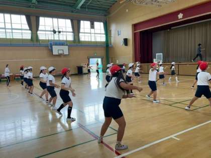 ダンスにチャレンジ、今日が最初とは思えないほど、子どもたちがリズムにのって弾んでいました。先生たちもすごいですね。