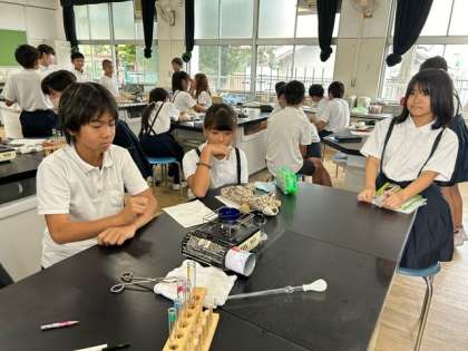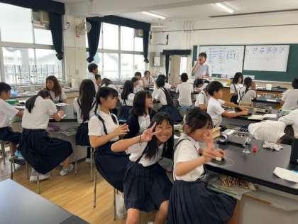 神経を集中させた実験が終わり、ほっとひと息、笑顔がこぼれました。