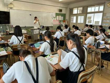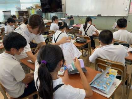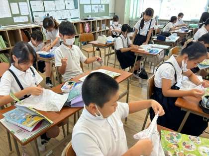 針に糸を通し、「なみ縫い」をしています。本返し縫いや玉止めも教えてもらっていました。