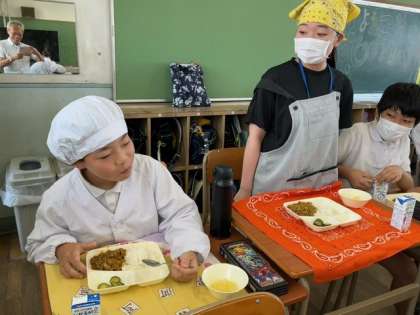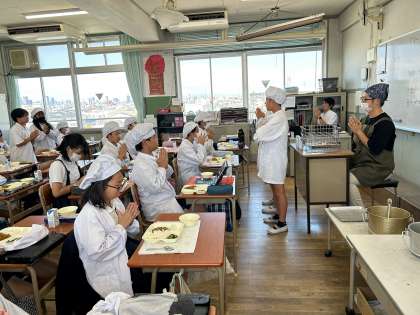 素敵な笑顔ですね。手洗い後、教室に戻ってきたところです。