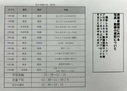 9/6 明日は土曜参観・(新1年生保護者対象の)学校公開日