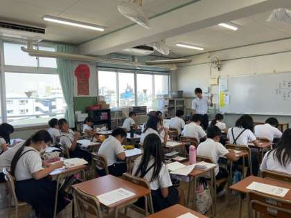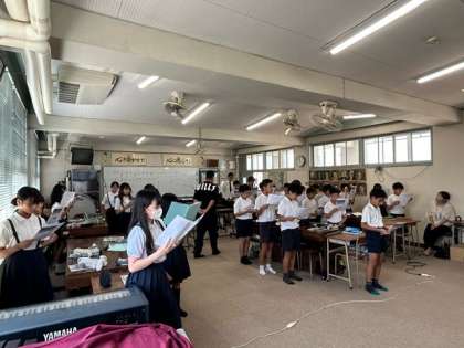 1組は国語科で「説明文を読もう」の学習、2組は音楽科で、合奏「ラバースコンチェルト」と合唱「明日という大空」です。